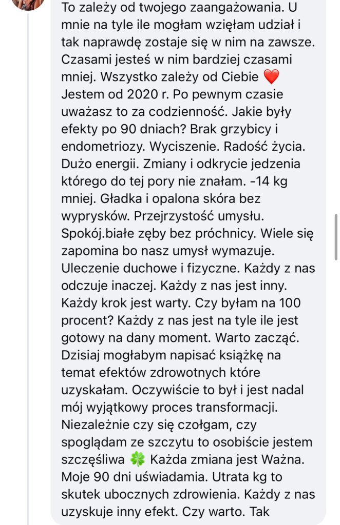 - Lepsze wyniki badań i kompletna przemiana zdrowotna w całym organizmie!… ten projekt to jest kompletna metamorfoza zdrowia nie tylko z zewnątrz, ale również pozwala wrócić do homeostazy.